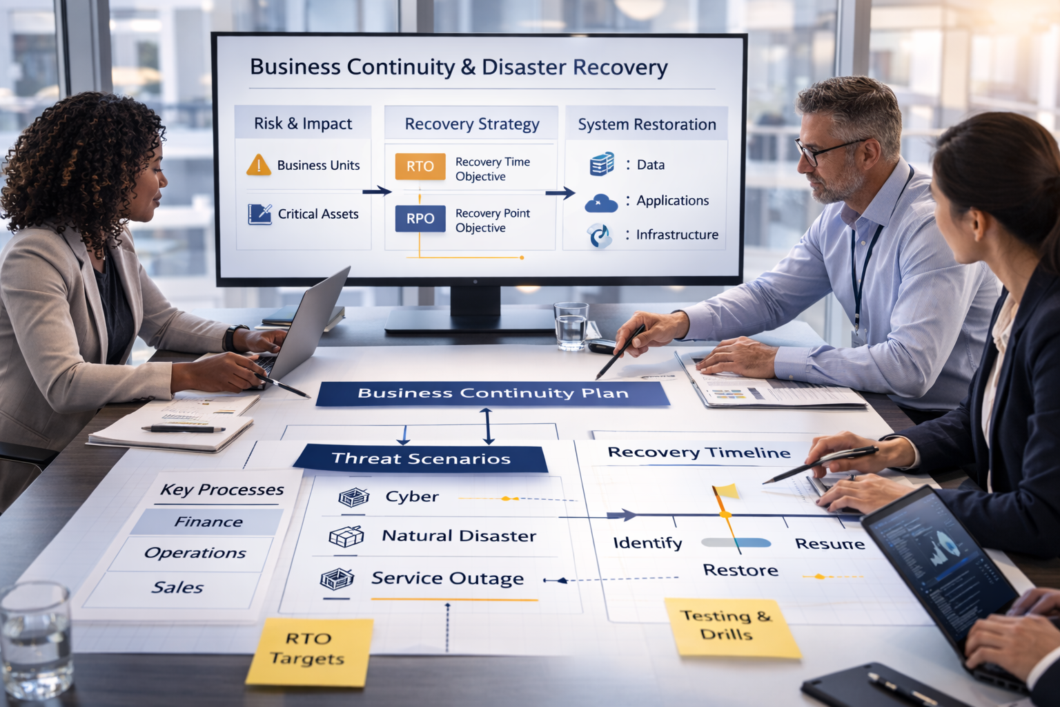 Reduce downtime, recover faster and boost confidence across your organization. We identify critical processes and dependencies, and implement priority recovery strategies.