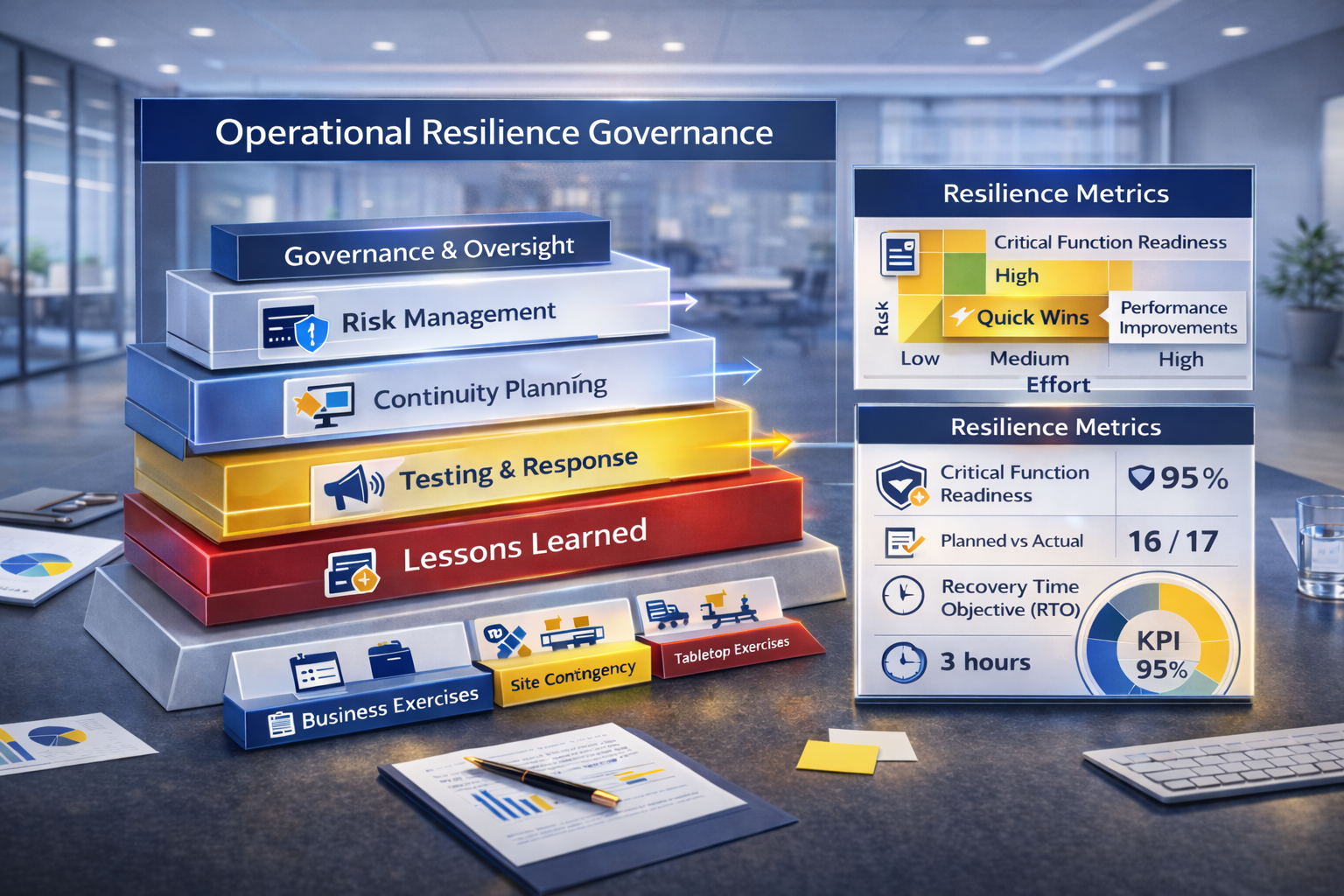 Build a living resilience capability that remains effective as your organization changes. We can manage governance and accountability processes directly on your behalf or transition ownership to your team.